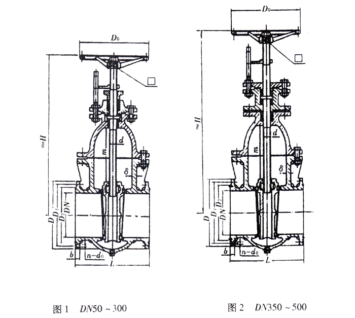 船用法蘭鑄鐵閘閥結構圖與尺寸表