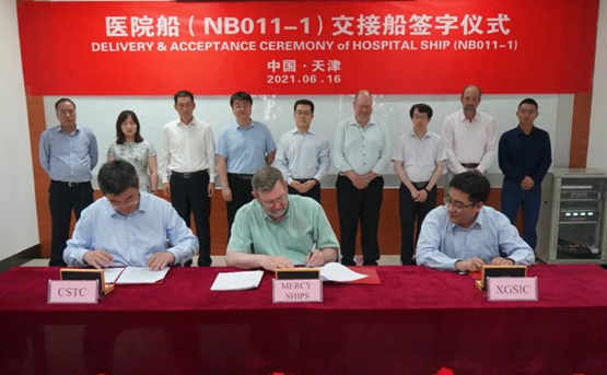 6月16日,新港船舶重工為美國船東Mercy Ships公司建造的醫院船順利簽字交付,即將前往比利時進行余下的安裝工作。