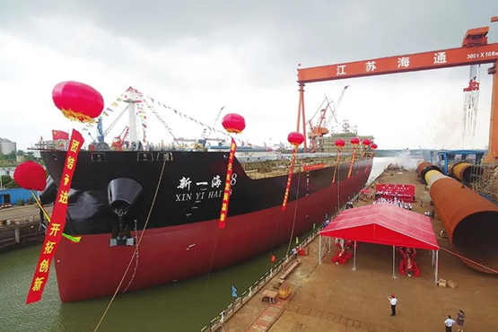6月26日,由江蘇海通海洋工程裝備有限公司建造的一艘51000噸散貨船——“新一海18”輪順利出塢,靠泊公司舾裝碼頭。