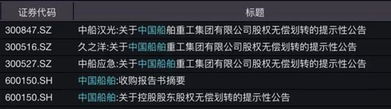 與此同時,久之洋(300516)、中船應急(300527)、中船漢光(300847)、中國重工(601989)、中國動力(600482)、中國海防(600764)等6家上市公司也發布公告稱,因國務院國資委將其控股股東中船重工集團的全部股權無償劃轉至中國船舶集團,導致中國船舶集團將成為公司的間接或直接控股股東。