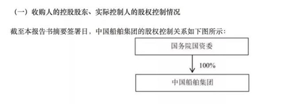收購報告書顯示,中國船舶集團系國有獨資公司,由國務院國資委代表國務院履行出資人職責,國務院國資委為中國船舶集團唯一出資人和實際控制人。中國船舶集團于2019年11月8日設立,為中船工業集團和中船重工集團實施聯合重組而新設,具備國家授權投資機構資格。