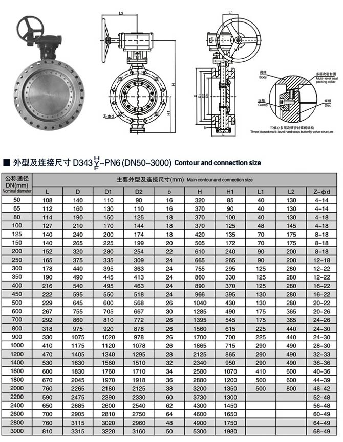 多層次硬密封蝶閥,三偏心多層次硬密封蝶閥相關尺寸圖: