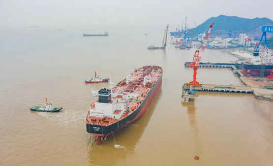 當(dāng)日下午16時,“STIRLING”輪移錨離廠,投入首航運營。這是舟山中遠(yuǎn)海運重工新造船首次實現(xiàn)當(dāng)天交付、當(dāng)天開航。